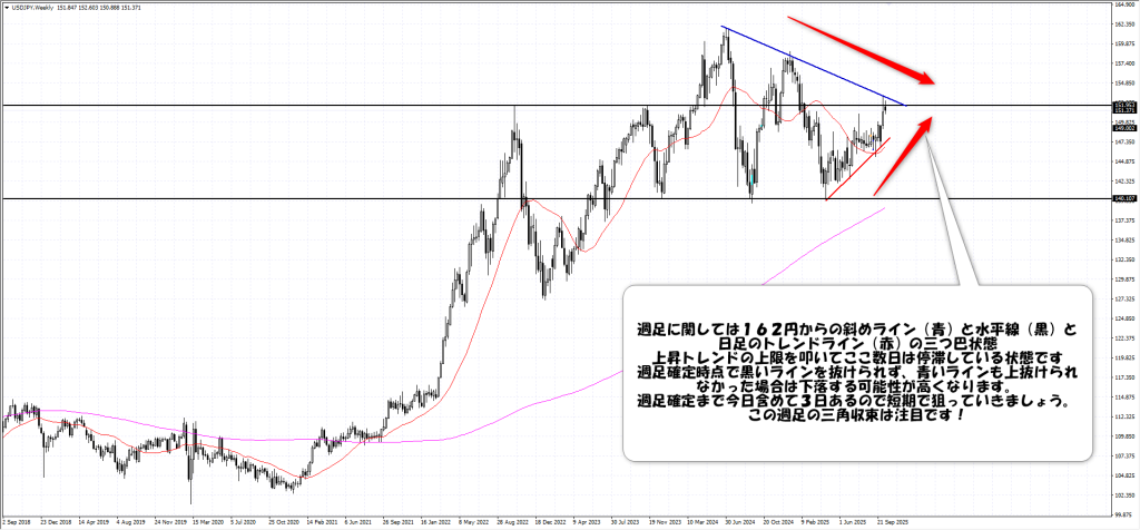 週足に関しては上昇トレンドなのは間違いありませんがラインの上限付近なのは意識しておきましょう。